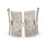 The pliability of Pewter makes it possible to create elegant and complex jewelry designs as seen in this elegantly etched Pewter Bracelet Tablets.