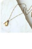 This 24 k gold plated hand pendant and authentic Biwa pearl hang together on a delicate gold plated ball chain in this beautiful charm necklace. The hamsa—or hand of protection—is an ancient talisman dating back to Mesopotamia and is revered throughout the world for its protection against negative energy. In the Jewish tradition, the hand of protection represents the hand of God and may be referred to as “the hand of Miriam;” Muslims may call it “the hand of Fatima.” Adherents to many different faiths and spiritual traditions wear hamsa jewelry as a protective measure against negativity and ill thoughts.